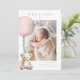 Announce the arrival of your little girl with this adorable pink teddy bear birth announcement card. Featuring a sweet watercolor bear, pink balloon with eucalyptus details, and a full photo layout, this design captures the charm of your newborn’s first moments. Personalise with baby’s name, birth date, and stats — perfect for sharing the joy with family and friends.