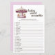 Make your twin girl baby shower extra fun with this adorable "Baby Word Scramble" game, featuring a sweet watercolor illustration of two cute teddy bears on a whimsical pink carousel. Guests will love unscrambling baby-related words in this engaging activity, perfect for keeping everyone entertained. Order yours today and create a fun, memorable experience for your guests!