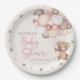 Pink Teddy Bear Balloon Bearly Wait Baby Shower Paper Plate
