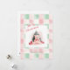 Little teddy bear is pink and cute and surrounded by Christmas gifts for Christmas. "Merry Christmas". A lovely pink and light green gingham or checked border makes the card even more special. On the back is an example greeting, but you can change all the text. Be sure to edit the family and personal names that are on the front and back of this flat card, and also the date.