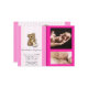 This baby design is a precious way to welcome and announce your new bundle of joy! This design has a light pink background with a white and pink stripe pattern to the left. To the right there is a dark pink bordered frame for two of your baby's photo. On the left side there is a cute brown teddy bear holding a baby blanket. Below that there is a place for the birth details and a personal message.