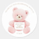 Pink Teddy Bear Girl Baby Shower Round Sticker. Designed with a watercolor teddy bear illustration. Matching items in our store Cava Party Designs.