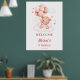 Pink teddy bear with balloons on clouds with stars birthday party personalised name welcome sign.