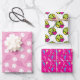 Three sheets of wrapping paper with three different green patterns. Great to wrap a gift for tennis player