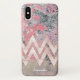 A beautifully unique feminine case with pink marbled chevron zig-zag stripes over a pink and grey textured abstract pattern background. Insert your name, monogram, or other desired text in place of the sample name shown in the design template. If you prefer the case without the name, simply delete the text.