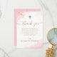 Pink Thank You Gold Cross Girl Baptism Card
