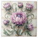 Beautiful tile with pink Thistle flowers on a divided square rustic, elegant tile.