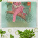 Pink Tiger and Parrot Tropical Jungle Tea Towel