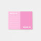 Practical sticky notes in pink with six to do list checkboxes on one side and a section to jot down notes or things to remember on the others. Dual purpose sticky notepad in a pink and white design personalised with name.