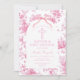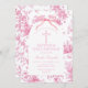 Pink Toile de Jouy Baptism & First Birthday Bow Invitation