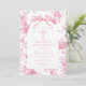 Pink Toile de Jouy Baptism & First Birthday Bow Christening Invitation