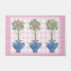 Pink Topiary Blue Rose Ginger Jar Doormat Rug