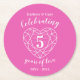 Pink Tourmaline anniversary 5 years of love Round Paper Coaster