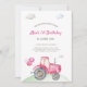Pink Tractor Birthday Invitation