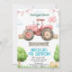 Pink tractor birthday party invitation