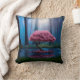 Pink tree and pond in the woods at night cushion