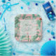 A pink tropical banana palm leaves wedding wedding design. This contemporary modern design is ideal for all Summer and destination weddings. A stylish vellum look overlay with modern calligraphy typography. A classy elegant tropical beach banana palm greenery wedding paper plate design with modern simple elements. Matching wedding invitations and other stationery items are also available.