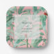 Pink Tropical Banana Palm Leaves Wedding Paper Plate