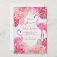 Dive into the vibrant allure of a Hawaiian luau with this stunning and trendy Pink Tropical Flamingo Bridal Shower Invitation. Transport yourself to a lush, exotic paradise of pink flamingos, lush greenery, and vibrant floral designs. This invitation is the perfect choice for a sun-kissed, summer-themed celebration that captures the spirit of a tropical destination. With its enchanting hibiscus blooms and swaying palm leaves, this invitation radiates the essence of a Hawaiian getaway. The playful pink flamingos set against the backdrop of lush tropical greenery create a cheerful atmosphere that's perfect for your bridal shower. Your guests will be enchanted by the bold and cheerful colours that evoke the feeling of a Hawaiian luau.