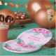 tropical jungle floral themed paper plates for your jungle themed baby shower! These paper plates are customisable and allow you to edit and personalise the text. Add your name and date! This design features tropical hibiscus flowers and monstera leaves.