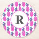 Pink tropical watercolor pineapple monogram round paper coaster. Easy to add your own monogram.