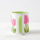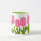 This coffee cup is made from beautiful bright pink tulips with a pink border