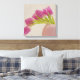 Pink Tulips In Rounded Pink Vase With lace Canvas Print