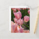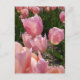 Pink tulips in a flower bed with the sunlight making patterns in the petals.