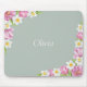 This elegant floral mouse pad features soft pink tulips and white daffodils arranged in a classic garden corner design. Set against a soft green background and personalised with your name, it brings refined botanical charm to your desktop.