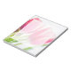 Notepad with a beautiful spring photograph featuring 2 pink tulips and bright green leaves.