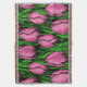 Pink tulips with green leaves throw blanket