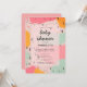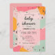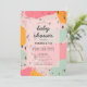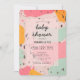 This trendy and modern baby shower invitation features abstract brush strokes patterns of neon pink, orange, on turquoise on blush pink background. The reverse side features pink background. Change the background colours on both front and back and personalise it for your needs. You can find matching products at my store.