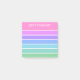 Personalised notes in white with colour boxes in a rainbow gradient ranging from pink to purple to blue to turquoise to mint green for your lists or notes. Add your name in a white hand writing font. Colourful sticky notepad with practical stripes in a gradient ranging from pink to blue to green for your daily to do lists. Make creating to do lists fun with these personalised sticky notepads in happy colours, personalised with your name. Great gift for a sister or a friend who loves making to do lists to organise their day.