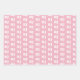 Personalized wrapping paper sheets perfect for graduation with three sheets: one features a photo collage of your graduate; one features your grad's initials in white against pink; and one features a graduation pattern in pink and turquoise and white.
