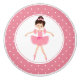 This cute knob features a little brunette ballerina wearing a pink tutu tied with a bow. The image is placed on a white background and is framed with a circular pink and white polka dot border. Cute for any little girl who dreams of being a ballerina.