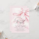 Set the tone for a beautiful celebration with this elegant blush pink bridal shower invitation. A soft watercolor pink bow creates a romantic and modern feel, perfect for chic, coquette-inspired events.