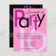 Cute birthday invitation for the sweet 16 girl! Fun and cheerful block style lettering in shades of bright pink and purple on pink background, and funky design on back with black background. Sleek contemporary design is perfect for a girl with awesome class and style. Customise online with your event details.