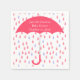 Pink themed baby shower paper napkins, with cute graphics big pink raindrops falling around a coral pink umbrella. Personalise the white text for your baby shower event. Coordinating baby shower products are available.