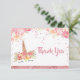 Unicorn design with pink flowers and gold effects Thank You card