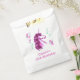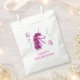 Pretty girl's birthday party favour bags, with graphics of a pink unicorns head, pink flowering vines, and pink custom text. Personalise the text for your daughter's special day. Matching cake pops, invitations, plates and napkins are available.