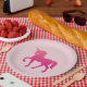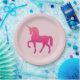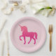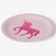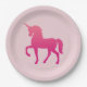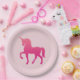 Pink unicorn party paper plates. For children party, birthdays, celebrations and occasions. Add your custom text and background color.
