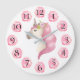Pink Unicorn Pretty Girly Pastel Floral Large Clock