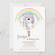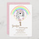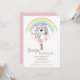 Invite all your family and friends to your baby's first birthday with this magical themed invitations fearing unicorn, rainbow, pink clouds and golden stars.