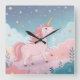 Pink Unicorn with Golden Horn – Pastel Clouds Square Wall Clock