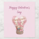 Pink Valentine's Day teddy bear romantic balloon Wine Label