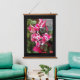 Decorate your living space with this vertical, hanging wall tapestry with wooden tops that features a photographic image of pink, variegated Cyclamen flowers and various, green foliage framed with a black border.