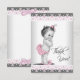 Baby girl thank you card with pink and black lace background and adorable vintage baby girl wearing ruffle pants, pink bunny slippers and pink bow in her hair. This cute pink flat style baby girl thank you card is easily customised by adding your message in the font style, font size & colour, and wording of your choice, or leave blank to add your handwritten message after they arrive.