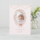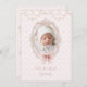 Sweet pink and white damask background with faux gold star garland draping down over the top of this lovely announcement. Add your beautiful daughter’s photo in the vintage faux frame. Perfect for a baby girl baby birth announcement.
