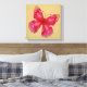 Design of beautiful, delicate pink butterfly, artistically drawn with inspirations from Asian or oriental style art influence. This design is set against a pale yellow background and has an overall vintage or retro feel. Perfect for decorative art for a home or kids room.