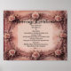 An aged Vintage look design with pink roses and text fields for you wedding information. Customise your own Marriage certificate by filling in your information in the easy template.
